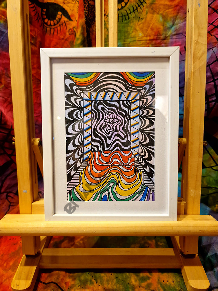 This small framed original piece is 17x22cm including the frame. A perfect small piece to brighten any room. And of course like all my artwork this was created with love :) Utilising a watercolour background, the posca pens stand out bright and bold.