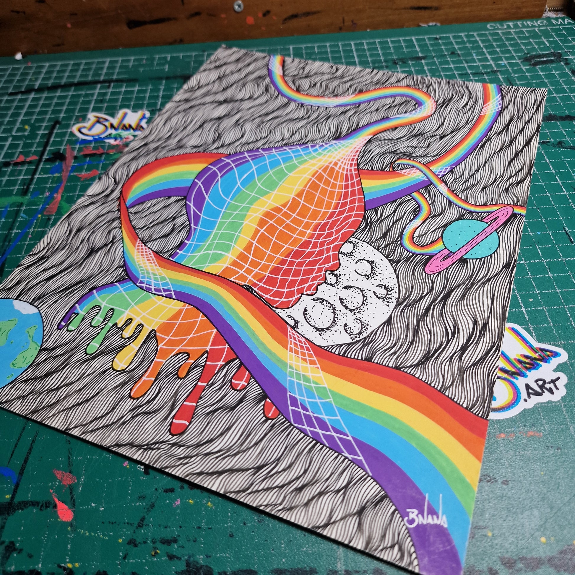 Lost In-Line, This is the original piece. A very special piece to myself. It was painted over a year ago and I have debated wether to release this one or not. The size of this piece is 10"x13". hand painted with posca pens on 240gm paper.